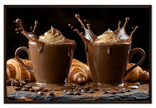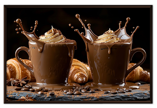 Чашки кофе с круассанами