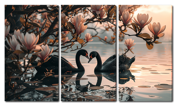 Черные лебеди на озере под деревом