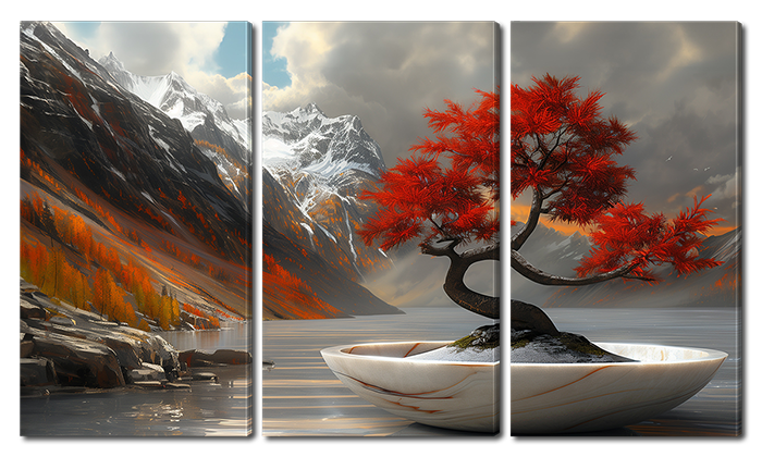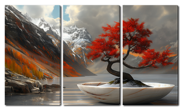 Дерево среди гор в горшке 4