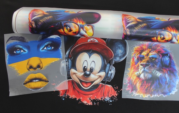 DTF (ДТФ) печать оптом на заказ. Термонаклейки на метраж в рулоне, цены на погонный метр при ширине пленки 60 см.