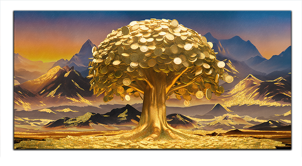 Картина с позолотой монетное дерево напечатана ультрафиолетовой печатью на холсте. Позолота - фольгирование поталью.