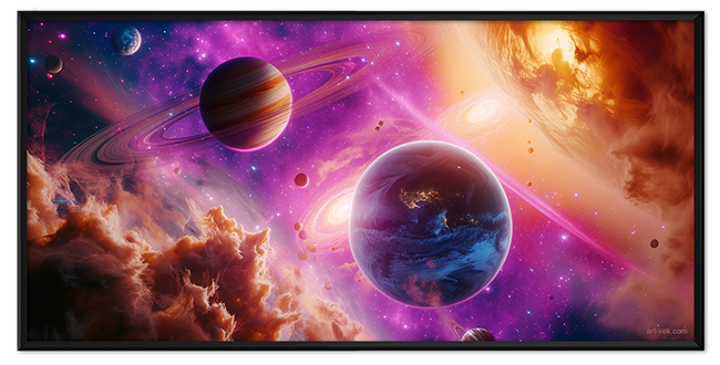 ✅ На сайте так же представленны картины в раме в другом исполнении - материал на деревянном подрамнике и обрамлен в багетную раму, -  отдел "Одиночные картины" выбрать функцию "C багетной рамой". По сути эти два исполнения как внешне, так и по долговечности не отличаются.