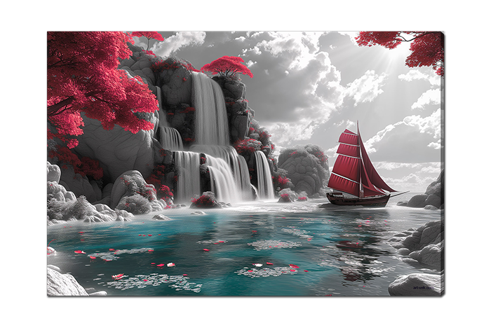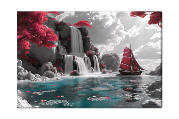 Лодка у скалы с водопадом 4