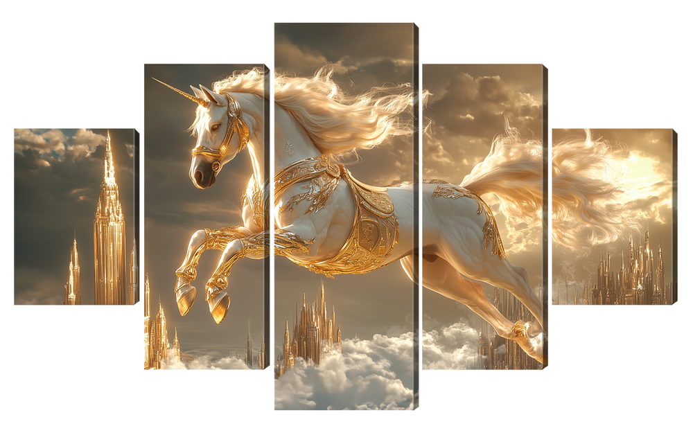 Модульная картина лошадь в золоте— картина на стену в гостиную