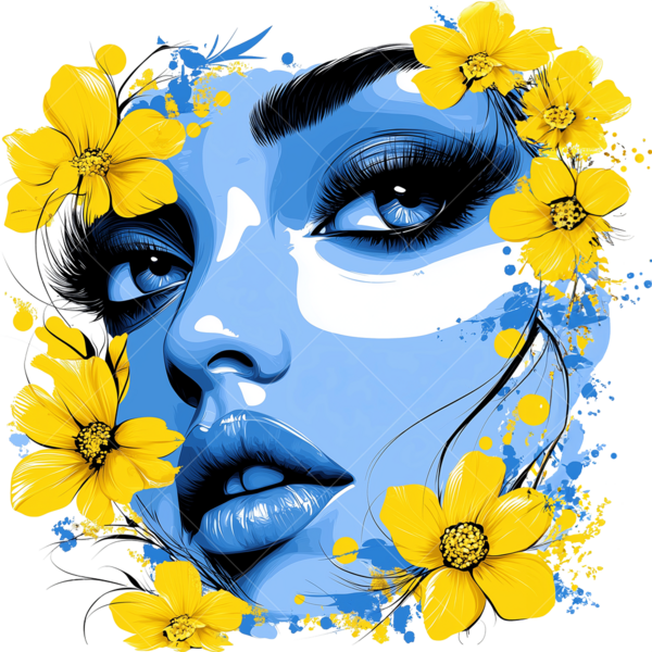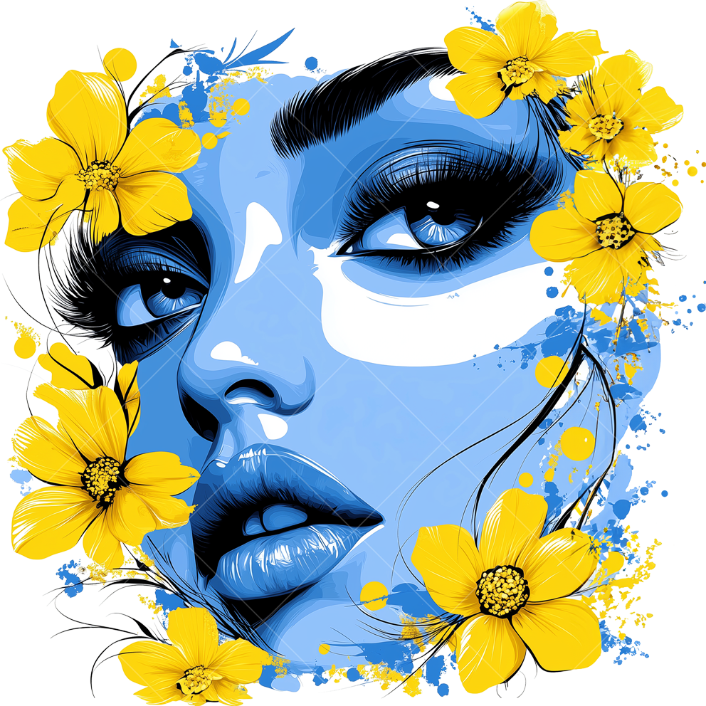 Патриотическая термонаклейка с изображением девушки с цветами в цветах флага Украины - стильный акцент для одежды. Легко наносится, устойчив к стирке, долго сохраняет насыщенность цветов, подходит для различных материалов.