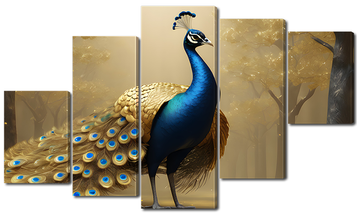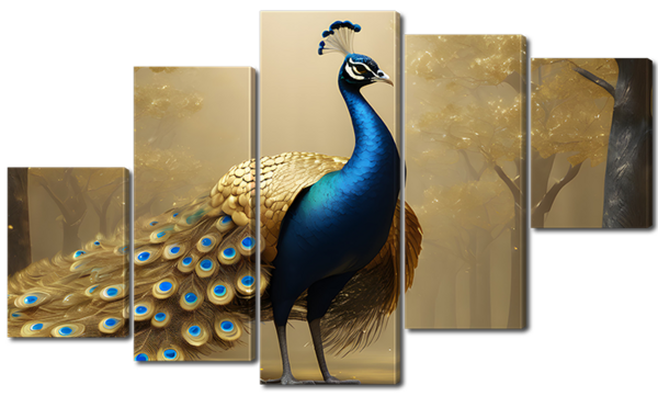 Павлин с золотыми перьями в лесу