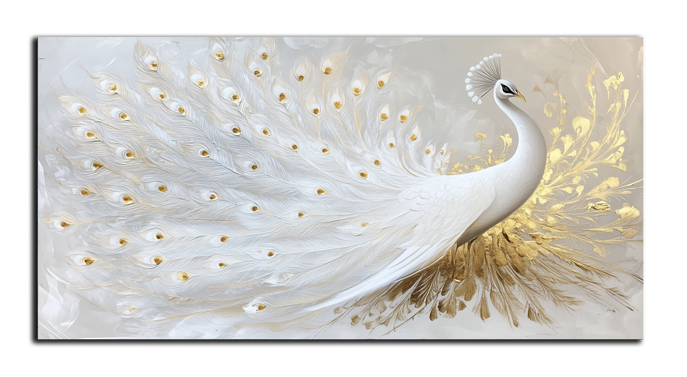Позолоченная картина "белый павлин"напечатана Ультрафиолетовыми чернилами, которые не теряют цвет. Материал картины холст. Позолота методом фольгирования поталью.Светлая картина для вашего интерьера.