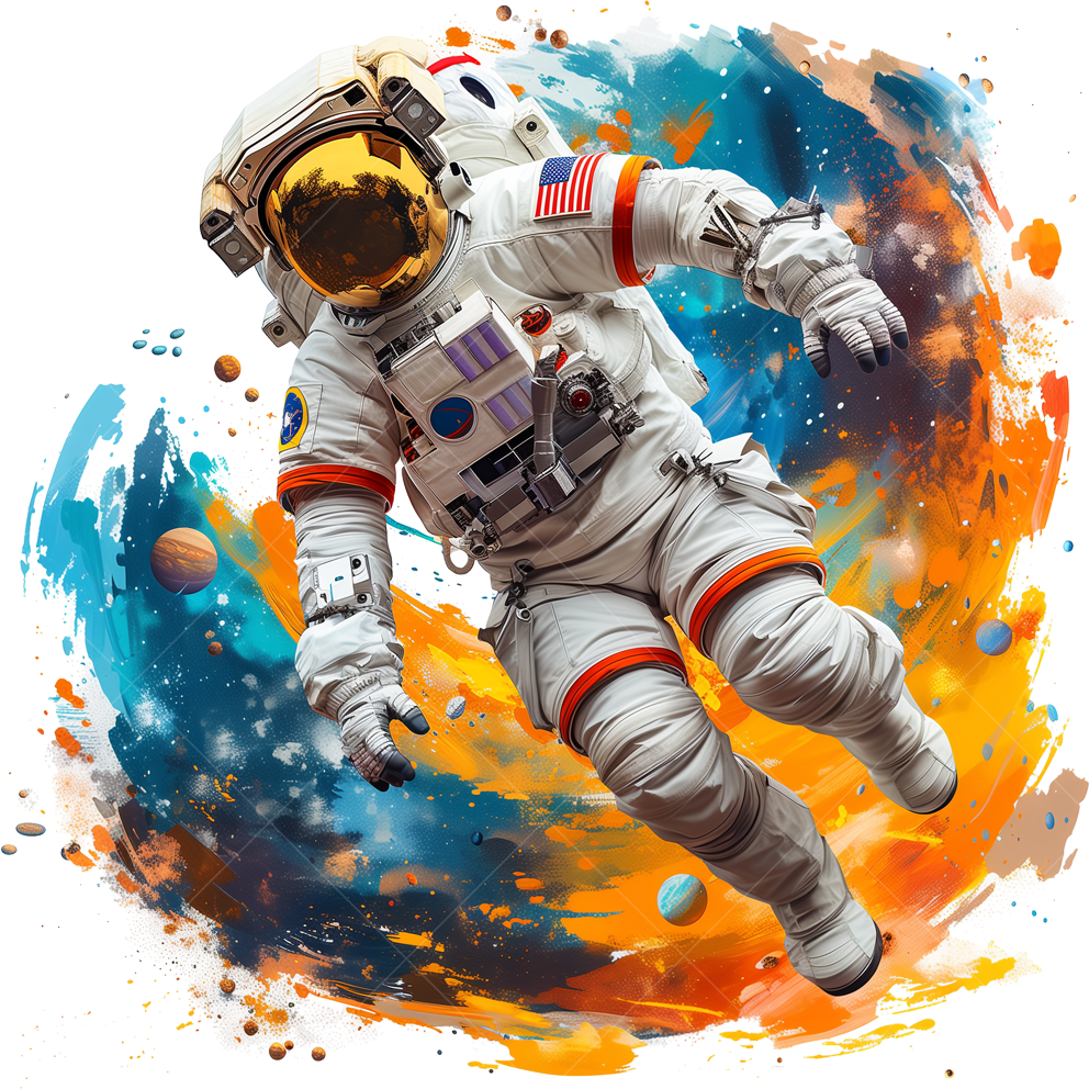 Термонаклейка Арт космонавт - стильный акцент для одежды. Легко наносится, устойчив к стирке, долго сохраняет насыщенность цветов, подходит для различных материалов.