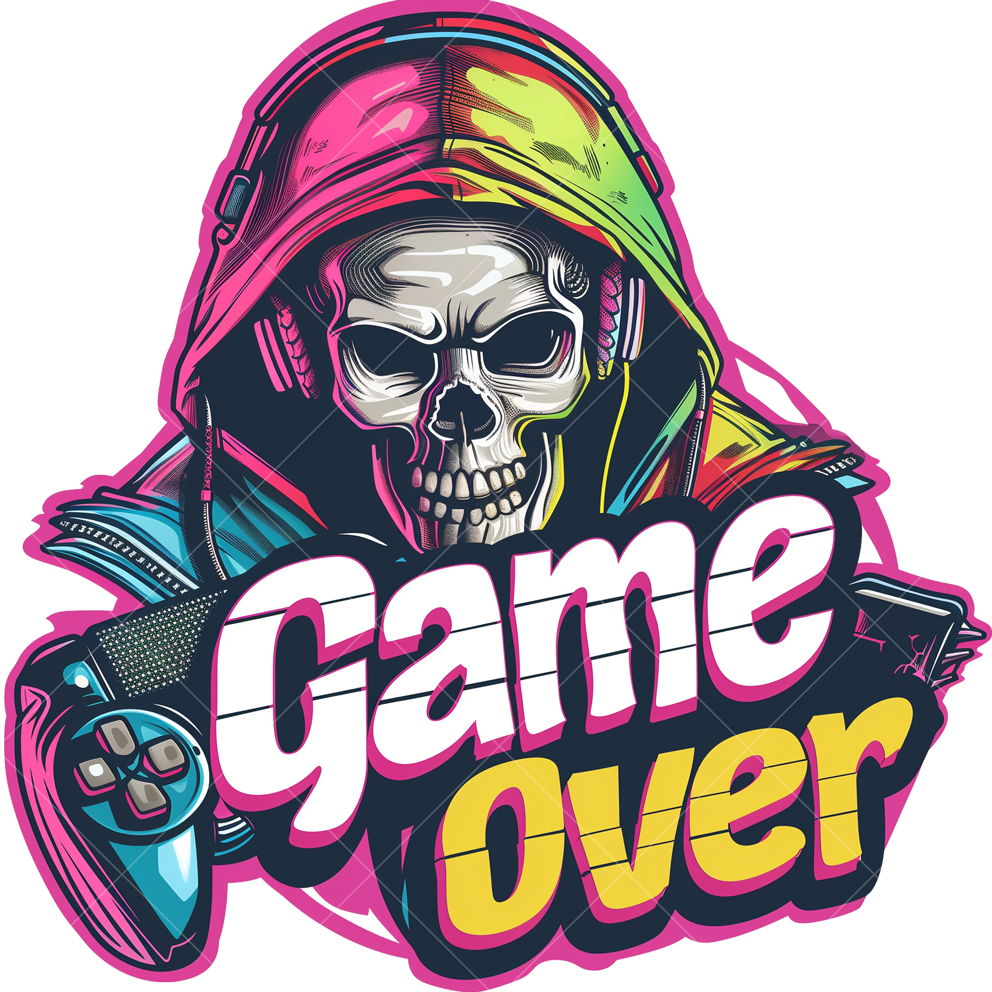 Термонаклейка череп с надписью "Game over" - стильный акцент для одежды. Легко наносится, устойчив к стирке, долго сохраняет насыщенность цветов, подходит для различных материалов.