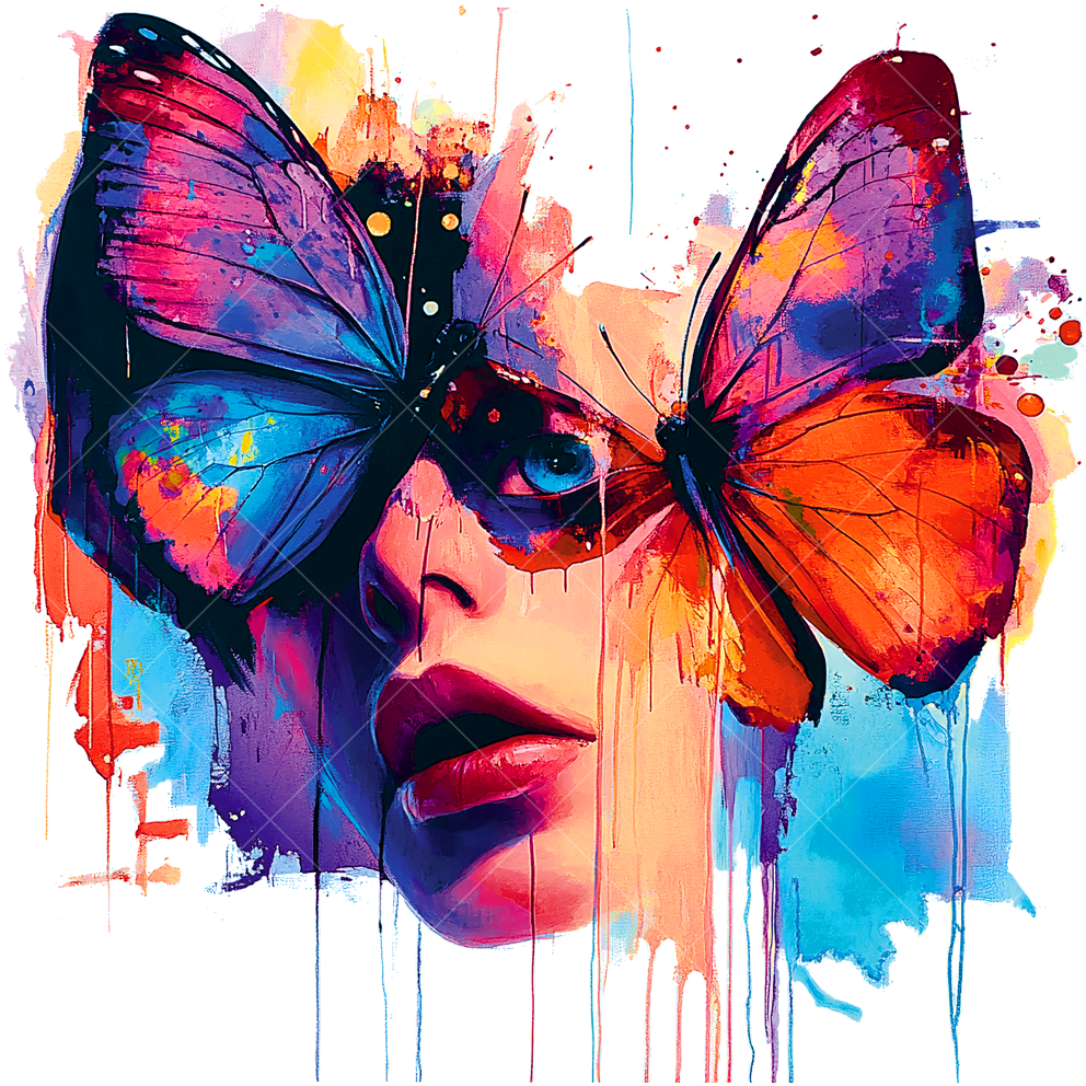 Термонаклейка Девушка с бабочками в красках арт - стильный акцент для худи. Легко наносится, устойчив к стирке, долго сохраняет насыщенность цветов, подходит для различных материалов.