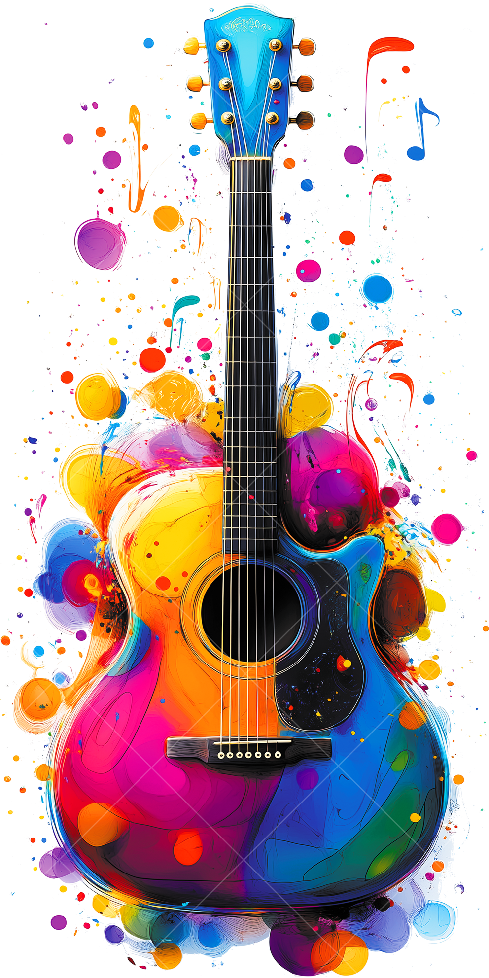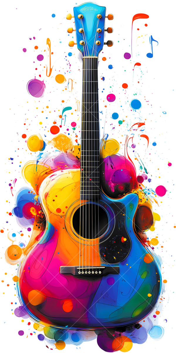 Термонаклейка гитара в красках - стильный акцент для одежды. Легко наносится, устойчив к стирке, долго сохраняет насыщенность цветов, подходит для различных материалов.