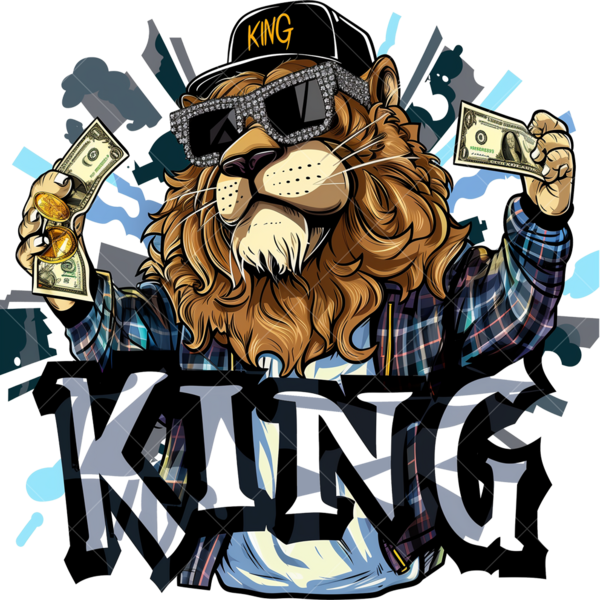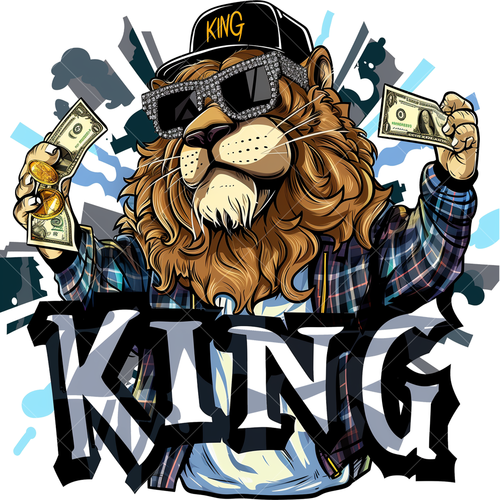 Термонаклейка с артом льва и надписью "King" - стильный акцент для одежды. Легко наносится, устойчив к стирке, долго сохраняет насыщенность цветов, подходит для различных материалов.