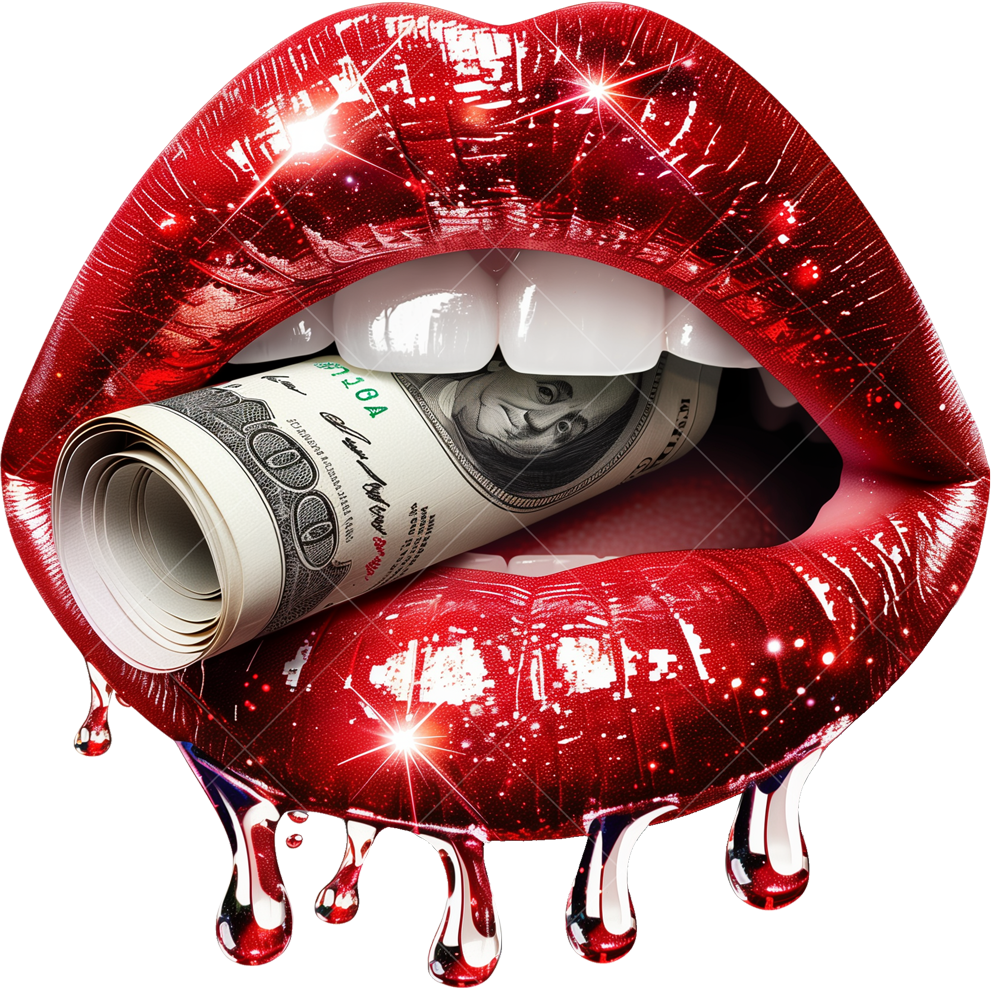 Термонаклейка с изображением женских губ с деньгами - стильный акцент для одежды. Легко наносится, устойчив к стирке, долго сохраняет насыщенность цветов, подходит для различных материалов.