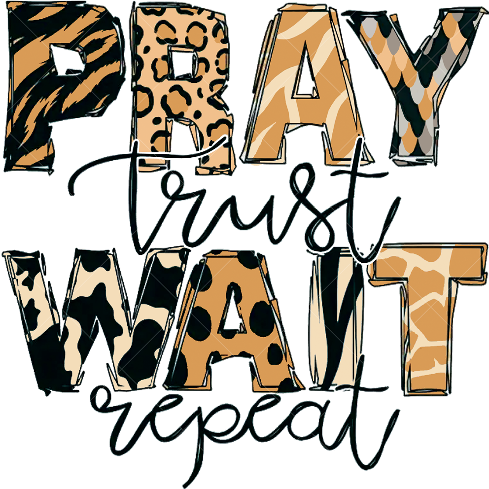 Термонаклейка стилизованная надпись "pray wait" - стильный акцент для одежды. Легко наносится, устойчив к стирке, долго сохраняет насыщенность цветов, подходит для различных материалов.