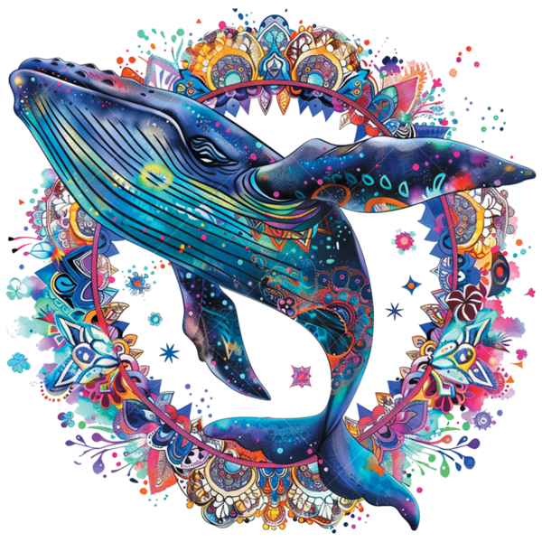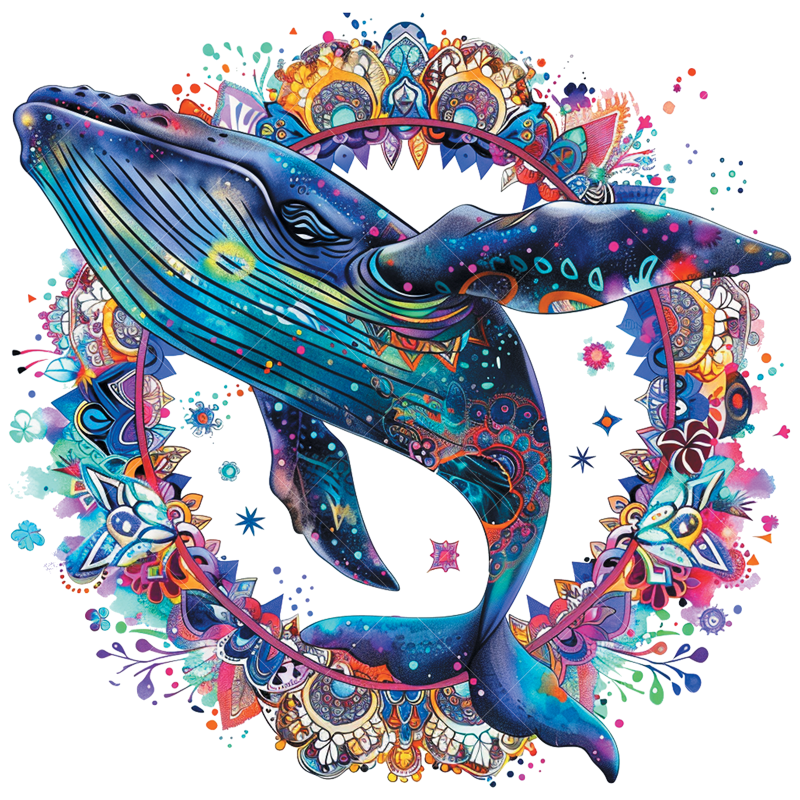 Термонаклейка цветная стилизация кита - стильный акцент для одежды. Легко наносится, устойчив к стирке, долго сохраняет насыщенность цветов, подходит для различных материалов.