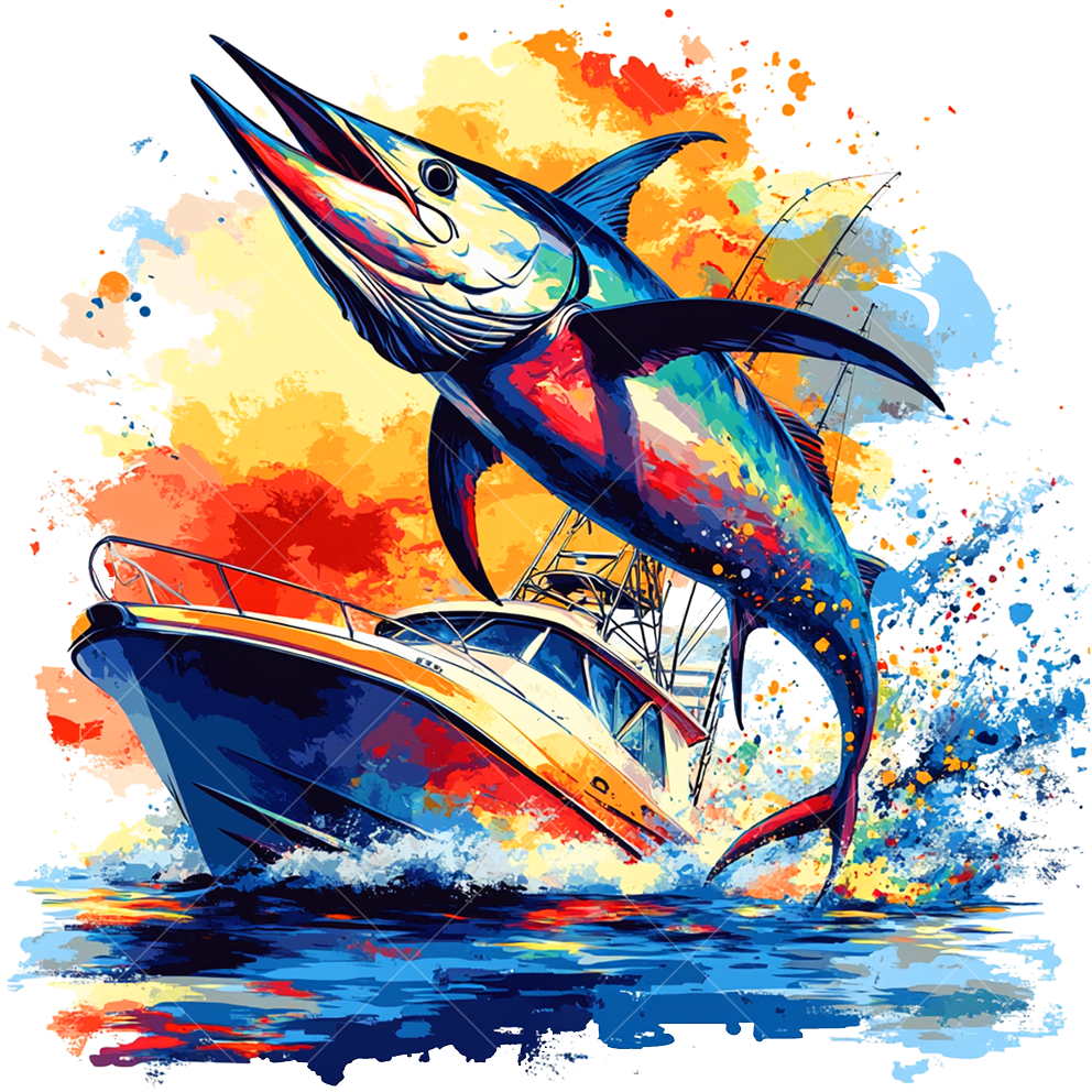 Термонаклейка яркий арт рыбалки - стильный акцент для одежды. Легко наносится, устойчив к стирке, долго сохраняет насыщенность цветов, подходит для различных материалов.