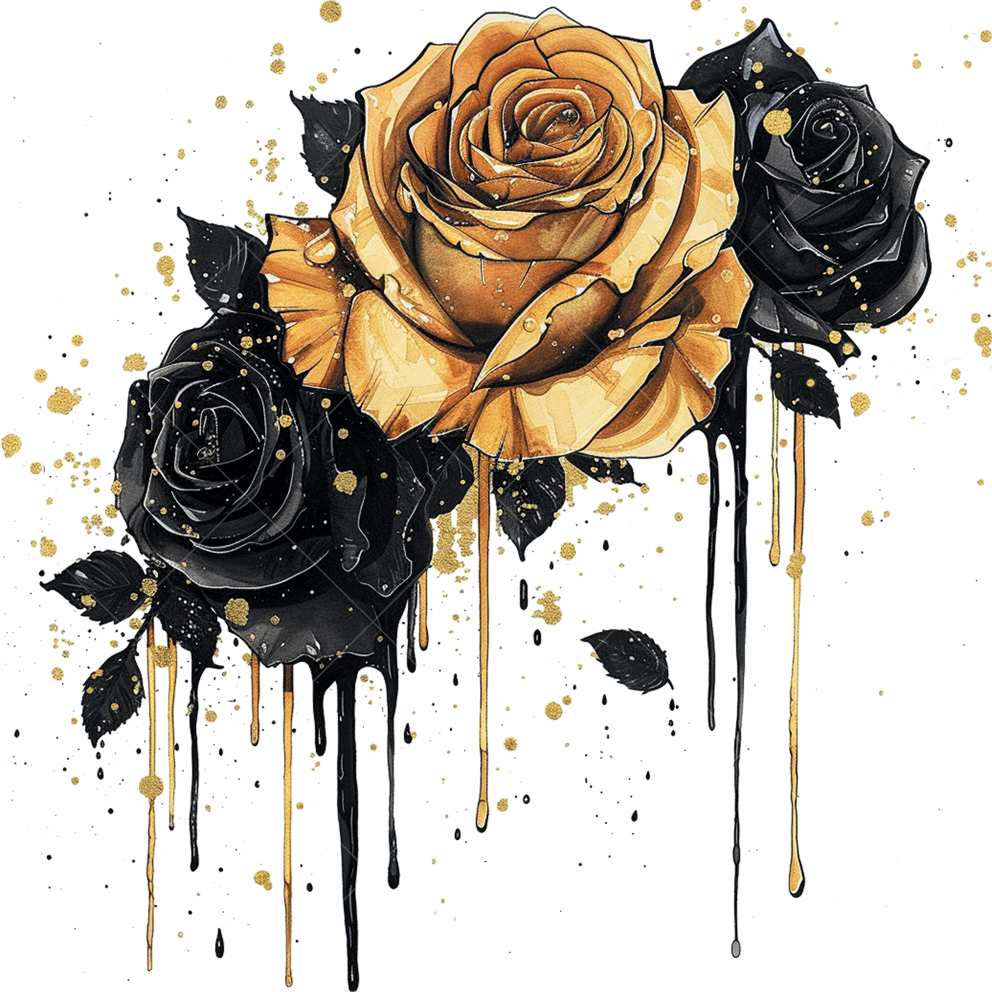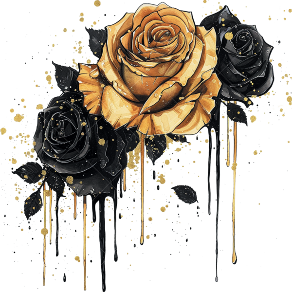 Термонаклейка золотистая и черные розы - стильный акцент для одежды. Легко наносится, устойчив к стирке, долго сохраняет насыщенность цветов, подходит для различных материалов.