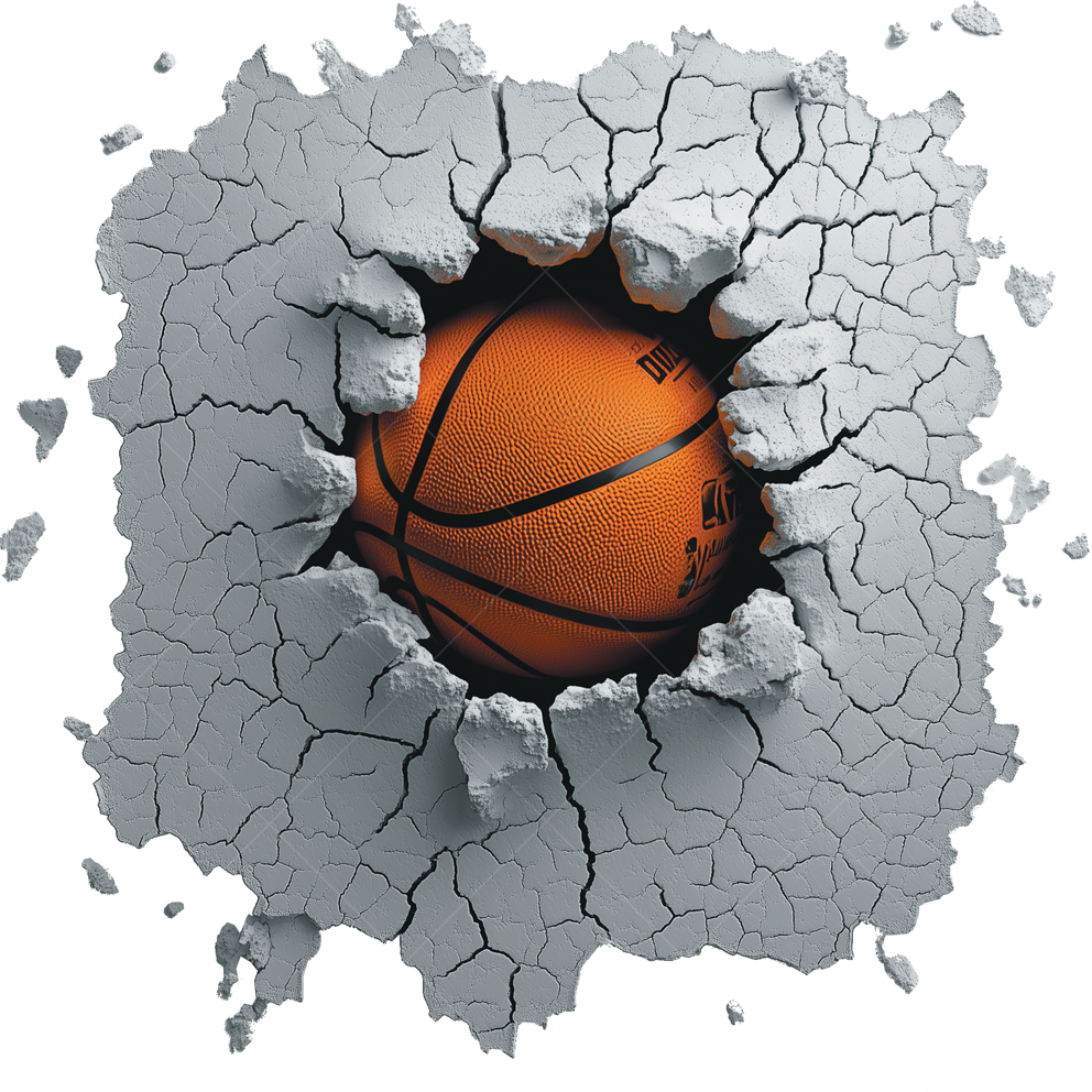 Термонаклейка Баскетбольный мяч в стене - стильный акцент для футболки. Легко наносится, устойчив к стирке, долго сохраняет насыщенность цветов, подходит для различных материалов.