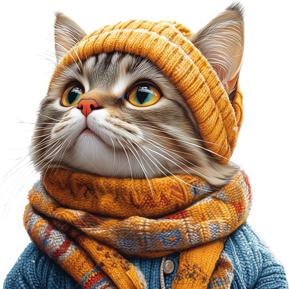 Термонаклейка Кот в зимних вещах - стильный акцент для одежды. Легко наносится, устойчив к стирке, долго сохраняет насыщенность цветов, подходит для различных материалов.