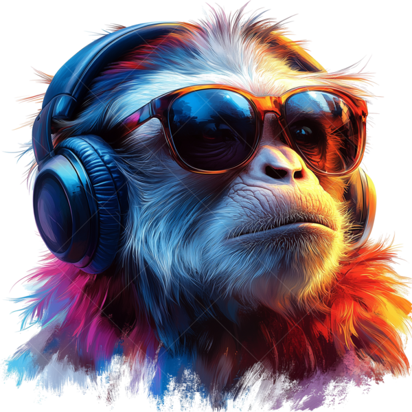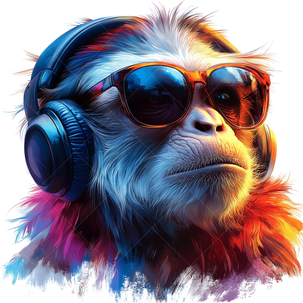 Термонаклейка Обезьяна в наушниках и очках - стильный акцент для одежды. Легко наносится, устойчив к стирке, долго сохраняет насыщенность цветов, подходит для различных материалов.