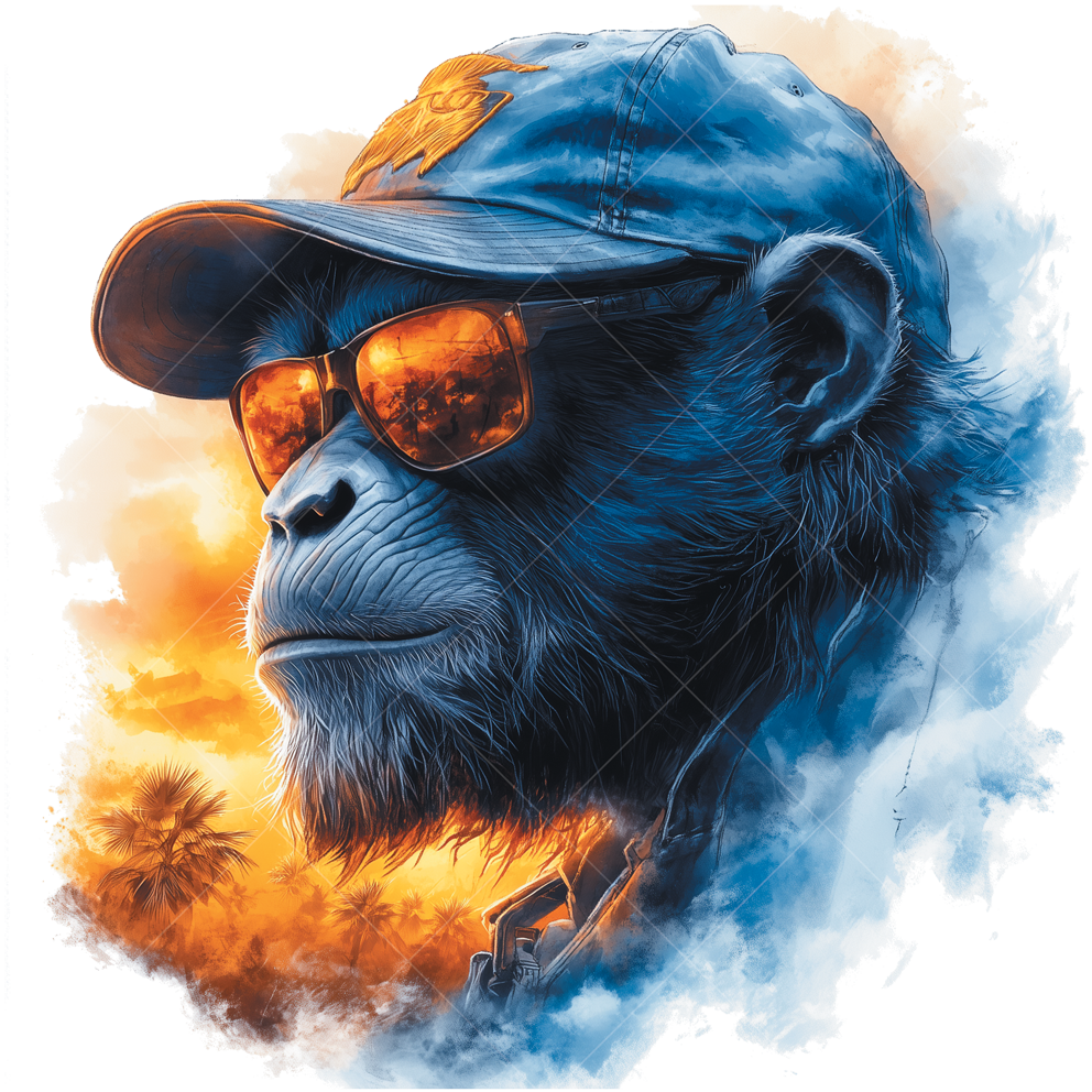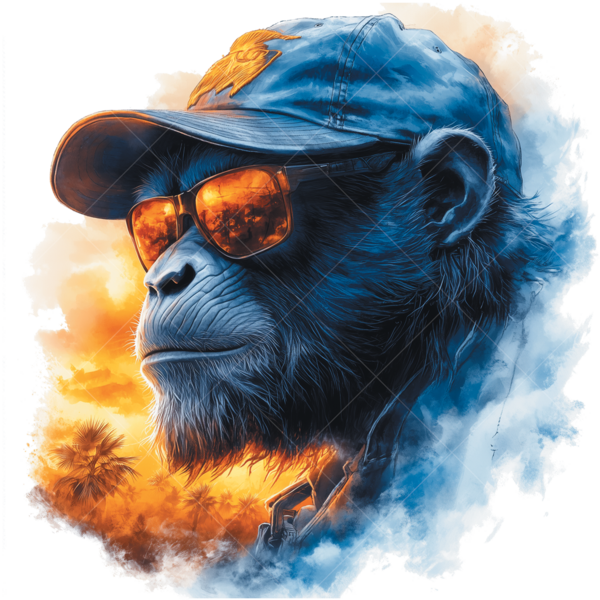 Термонаклейка обезьяна в очках и кепке - стильный акцент для одежды. Легко наносится, устойчив к стирке, долго сохраняет насыщенность цветов, подходит для различных материалов.