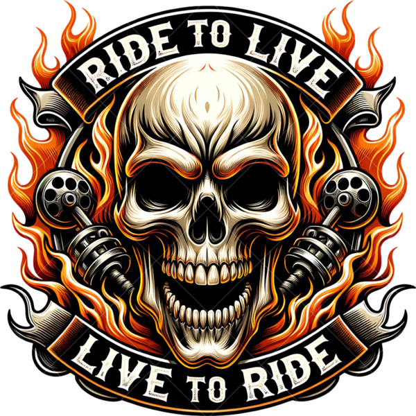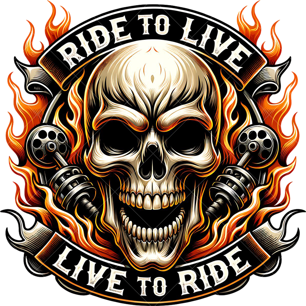 Термонаклейка с изображением черепа с надписью "ride to live" - стильный акцент для футболки. Легко наносится, устойчив к стирке, долго сохраняет насыщенность цветов, подходит для различных материалов.