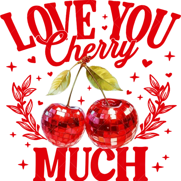 Термонаклейка с изображением черешни и надписью "love you cherry" - стильный акцент для футболки. Легко наносится, устойчив к стирке, долго сохраняет насыщенность цветов, подходит для различных материалов.