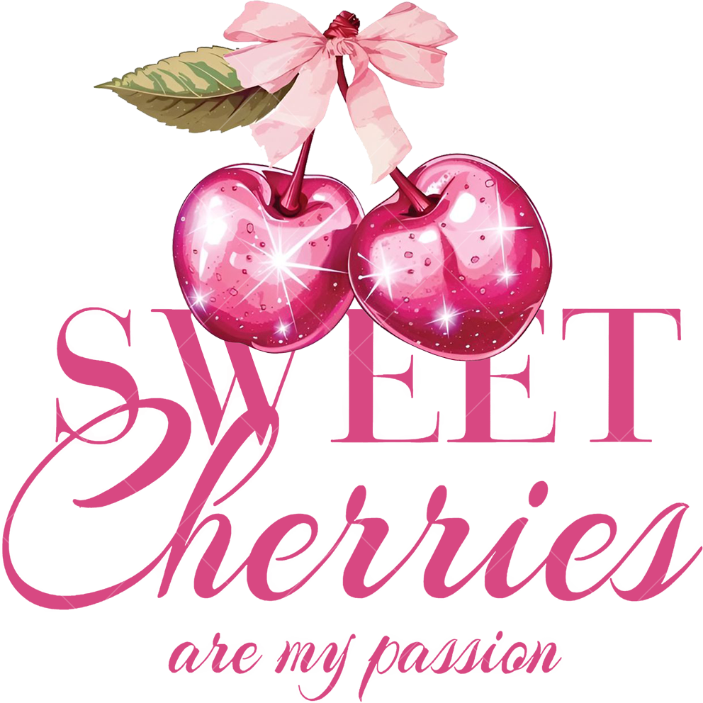 Термонаклейка с изображением черешни и надписью "sweet cherries" - стильный акцент для футболки. Легко наносится, устойчив к стирке, долго сохраняет насыщенность цветов, подходит для различных материалов.