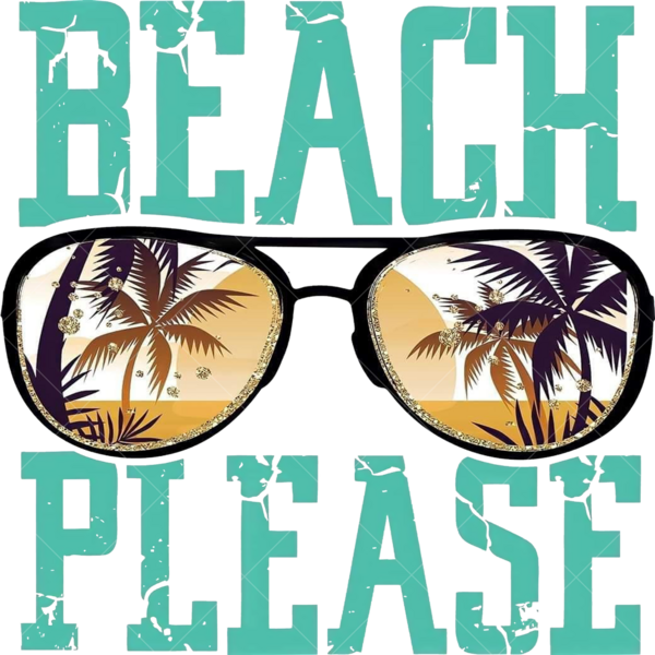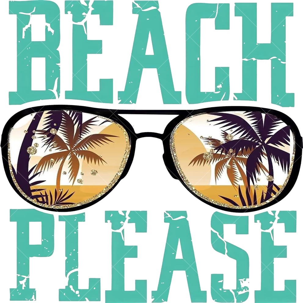 Термонаклейка с изображением очков и надписью "beach please" - стильный акцент для футболки. Легко наносится, устойчив к стирке, долго сохраняет насыщенность цветов, подходит для различных материалов.