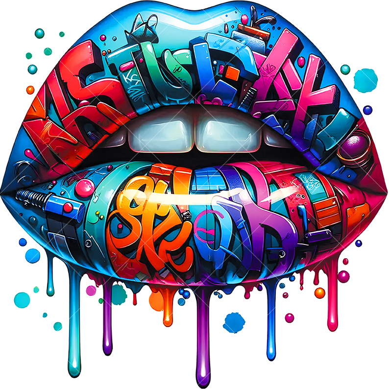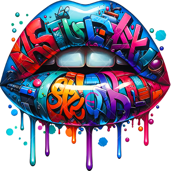 Термонаклейка с стилизованным изображением губ с граффити - стильный акцент для одежды. Легко наносится, устойчив к стирке, долго сохраняет насыщенность цветов, подходит для различных материалов.