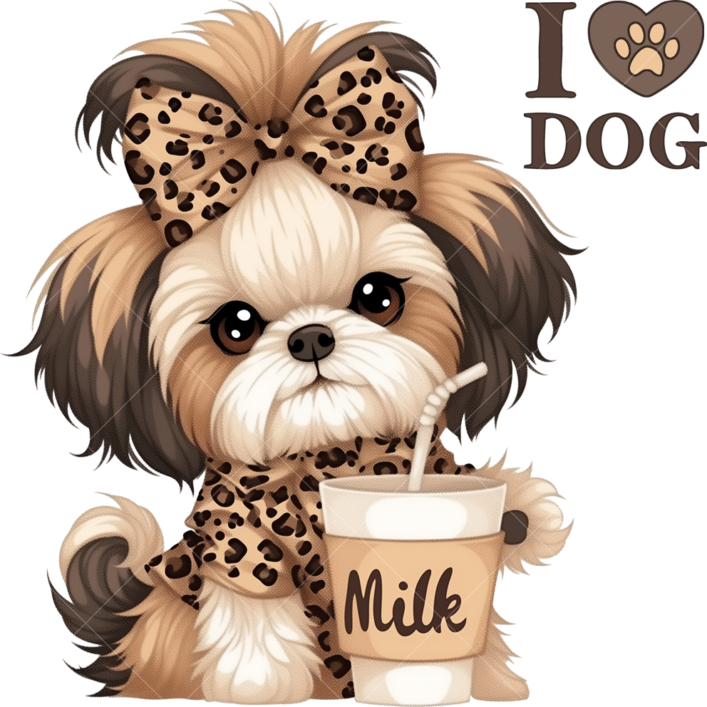 Термонаклейка собака с молоком - стильный акцент для одежды. Легко наносится, устойчив к стирке, долго сохраняет насыщенность цветов, подходит для различных материалов.