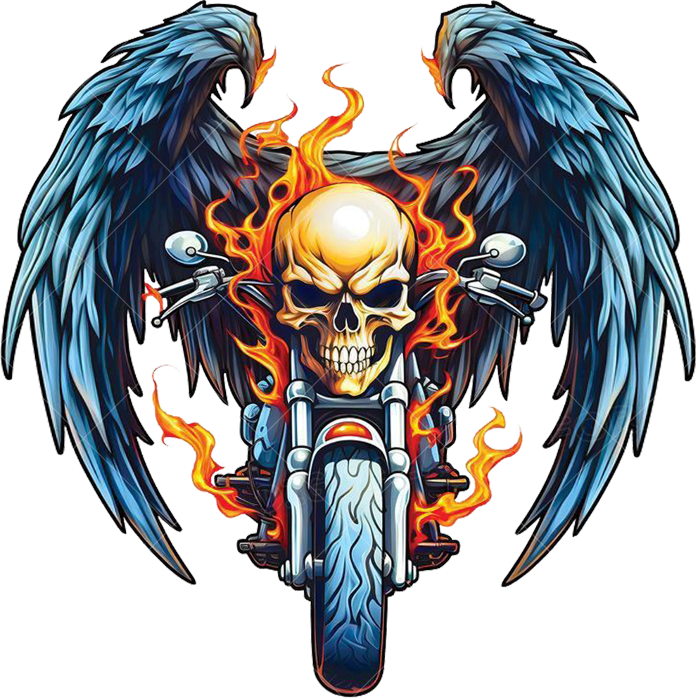 Термонаклейка мотоцикл с черепом - стильный акцент для одежды. Легко наносится, устойчив к стирке, долго сохраняет насыщенность цветов, подходит для различных материалов.