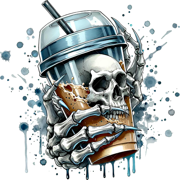 Термонаклейка с изображением стакана с черепом - стильный акцент для одежды. Легко наносится, устойчив к стирке, долго сохраняет насыщенность цветов, подходит для различных материалов.
