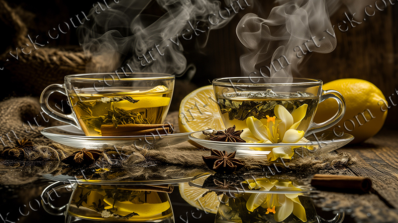 это - Черный чайник с мятой чая.